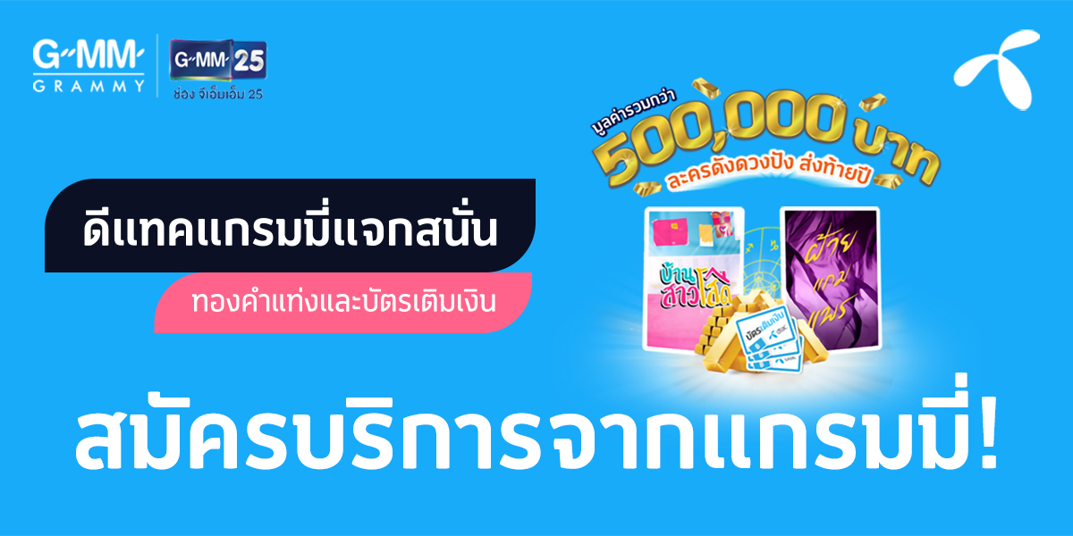 ดีแทคแกรมมี่แจกสนั่น ดวงดีลุ้นรางวัลกว่า 5 แสนบาท! แค่สมัครบริการบันเทิงจากแกรมมี่